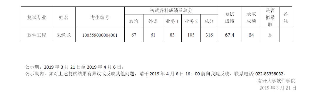 【研究生复试】2019年非全日制硕士研究生入学考试复试结果