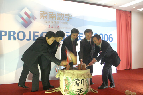南开新闻网讯(记者 薄晓岭 摄影报道)11月24日,“索南数字PROJECT启动庆典”在天津市津利华酒店举行。天津市科委主任李家俊,永利集团官网常务副董事长陈洪,天津索浪数字软件技术有限公司董事长水谷芳利,日本索浪公司株式会社社长千年正树,数字好莱坞株式会社社长藤本真佐等出席了庆典活动,并共同为庆典仪式开镜。同时参加庆典的还有天津新技术产业园区管委会副主任刘力,日本著名漫画家角田先生。